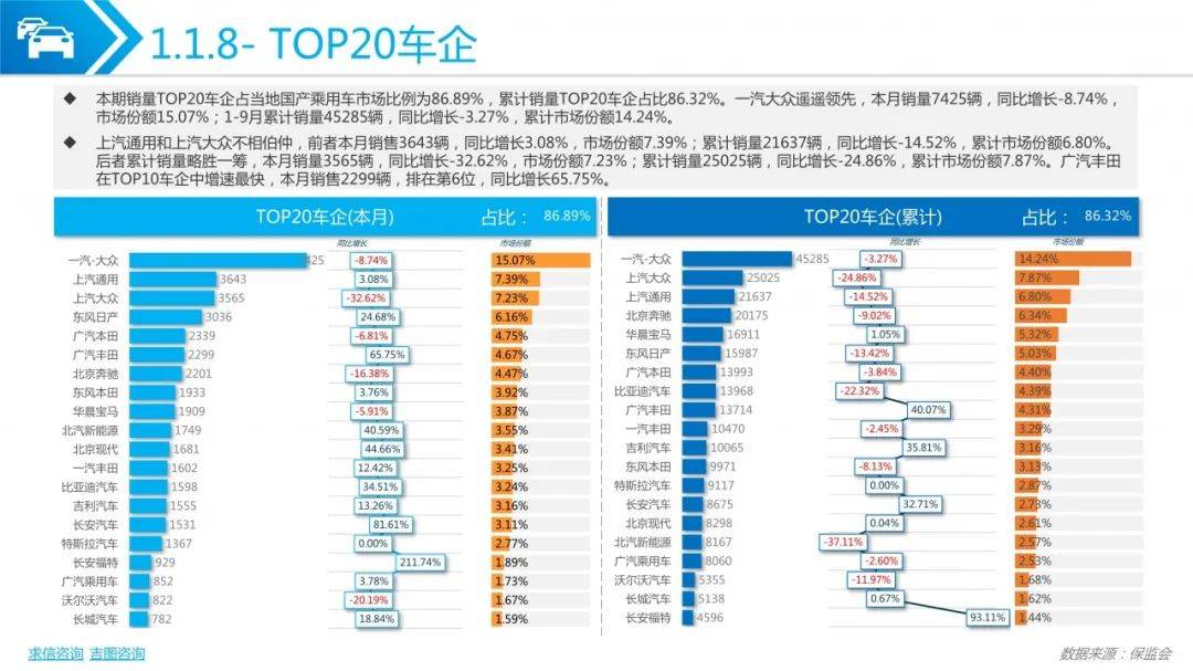 1.8月全国乘用车市场回顾零售:8月全国乘用车市场零售199.5万辆,同比增长4.6%,环比增长8.2%;今年以来累计零售1,474.1万辆,同比增长9.5%。今年国内车市零售累计增速从1-2月的1.2%持续拉升到1-6月的11%,7-8月呈现高基数的减速特征,符合年初判断的“前低中高后平”的走势。...