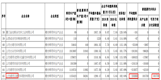 2019年双积分核算情况中,上汽通用五菱是不合格的,产生负积分83109分,按照目前的积分交易价格,大概在亿级的规模。>