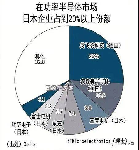 > >根据英国Omdia公司的数据,2019年全球功率半导体的市场规模达到1.46万亿日元。英飞凌、安森美、三菱电机、意法半导体、东芝、富士电机、瑞萨电子七家半导体公司就占去了67%的份额。其中大头被德企英飞凌所占;日本企业数量最多,四家企业的总比重达到23.6%。>