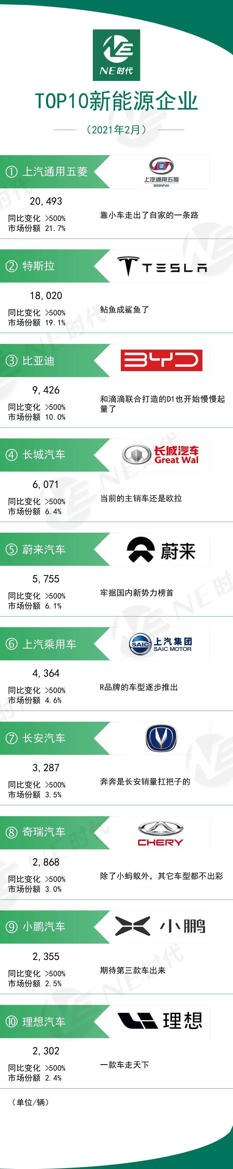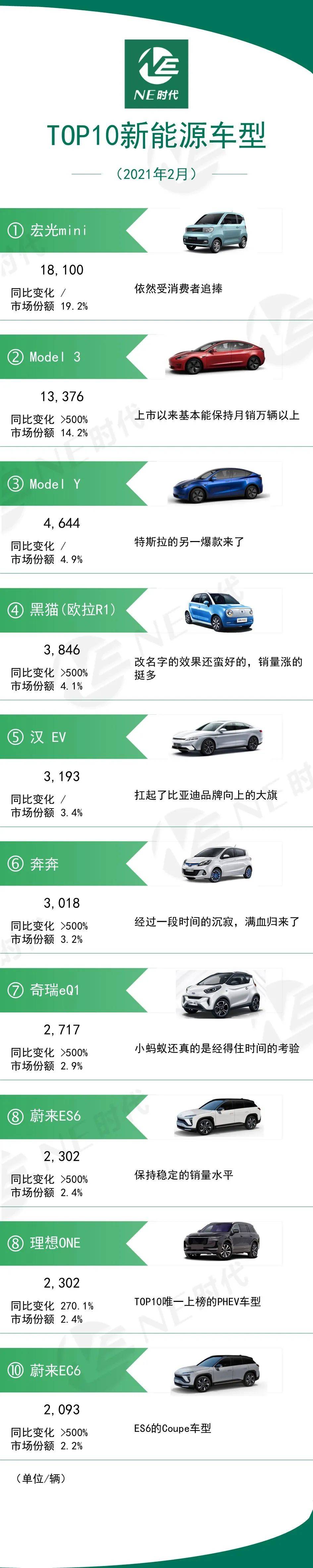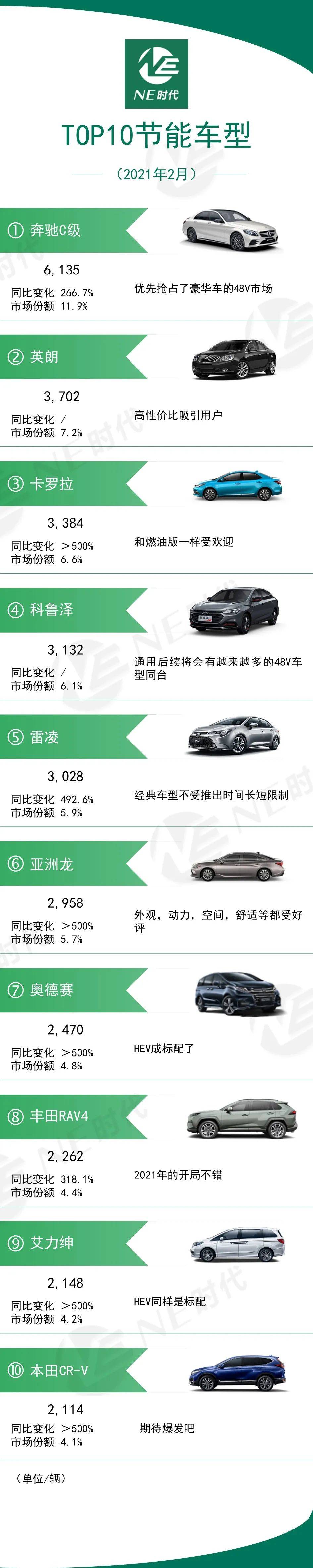 由于去年疫情的原因,2020年2月的整体汽车销量基数低,导致今年2月份的节能车和新能源车的同比都有比较大的增长。根据保险数据,2021年2月份,节能车销量实现5.2万辆,其中48V乘用车销量为2.55万辆,HEV乘用车为2.58万辆。新能源乘用车销售9.44万辆。>