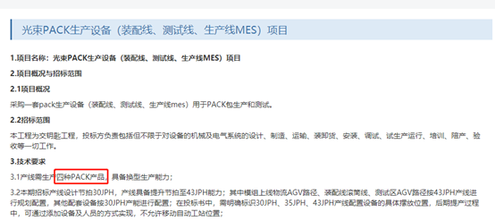 所以这也不难解释为什么光束开始给泰州工厂招标pack生产设备。>