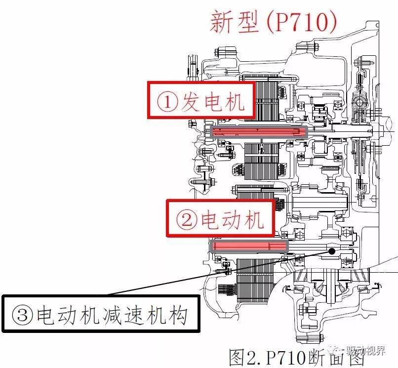 P314的发电机和电动机为同轴式,P710为平行轴式>
