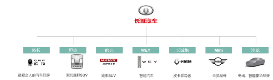 > >在“强后台、大中台、小前台”组织架构的驱动下,长城汽车目前共用7个品牌,哈弗、WEY、欧拉、长城炮、坦克五个品牌已有车型量产,沙龙品牌预计2022年推出首款车型,与宝马Mini合资的光束品牌预计2023年推出首款车型。>