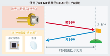 >ToF是“Time of Flight”的缩写,是一种通过测量作为光源的光的飞行时间来计算距离并感测空间的手法。ToF系统即使用了该手法的3D(三维)空间识别和测距系统。>