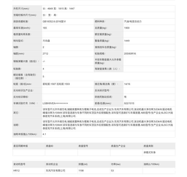 根据东风日产的申报,轩逸e-POWER将搭载一台由东风汽车有限公司所生产的型号为HR12 e-POWER系统,该系统由1.2L发动机与电动机组成。其中,1.2L发动机最大功率为53kW;驱动电机最大功率为100kW,油耗申报值4.1L/100km。电池容量较小,但能实现闪充闪放,充放电倍率是普通储能型电池的10倍。>