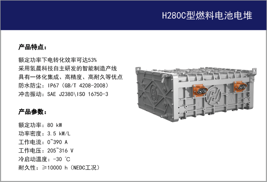 >同时,氢晨科技针对重载长途商用车开发的“重型商用车规级大功率金属极板燃料电池技术”,掌握了高功率、重负载、车规级燃料电池的完全自主知识产权。>