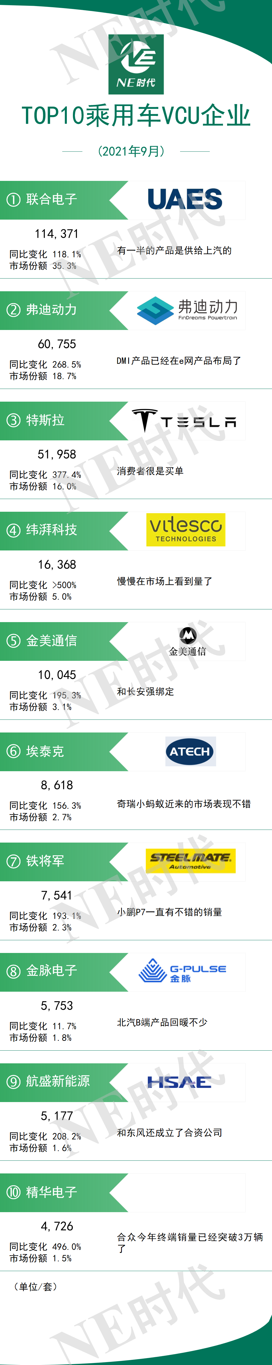 > >在VCU市场,联合电子持续保持高的市场份额,9月装机量超10万套。而纬湃科技随着大众MEB平台的ID4和ID6的上市上量,取得了比较大的增长。>