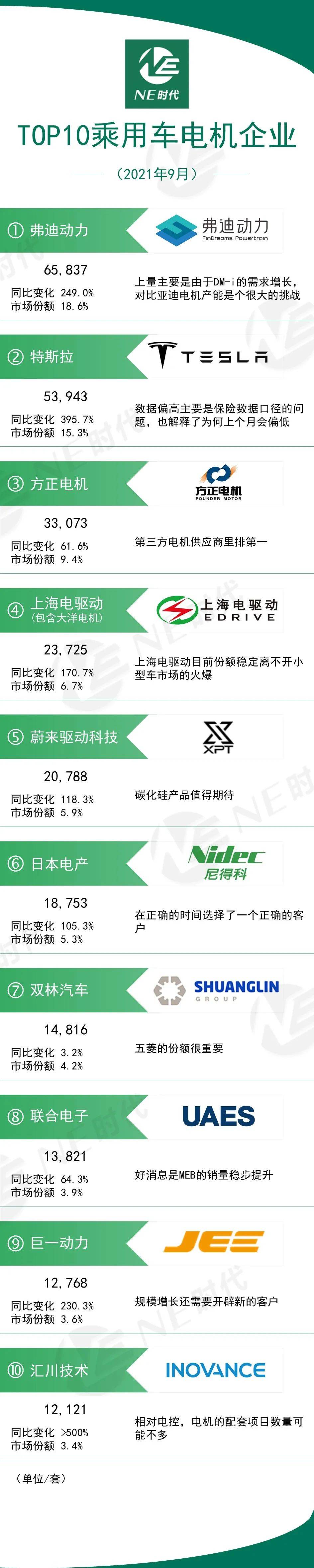 2021年9月,国内新能源乘用车突破30万辆。根据保险数据统计,9月电机装机量达到了34.5万套。>