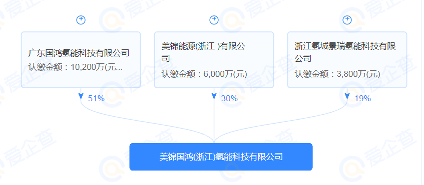>>美锦国鸿氢能成立于2020年6月,是广东国鸿氢能、浙江美锦能源、浙江氢城景瑞三家共同出资成立的氢燃料电池企业。> >