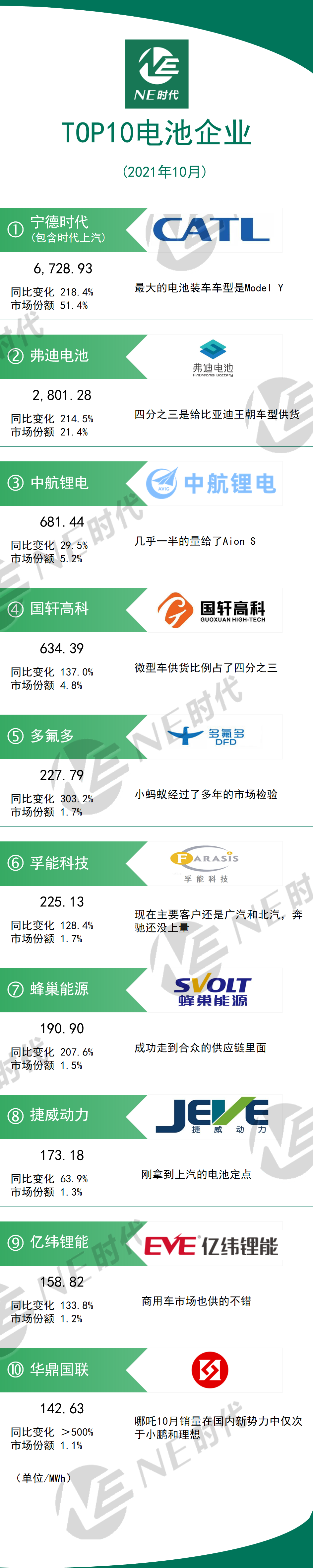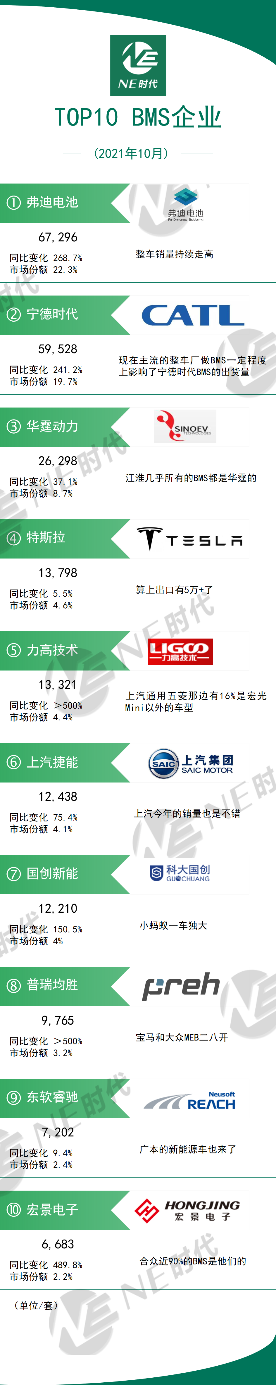 此外,10月BMS配套量30.2万套,其中Top 10 BMS企业占据了75.7%的市场份额。>