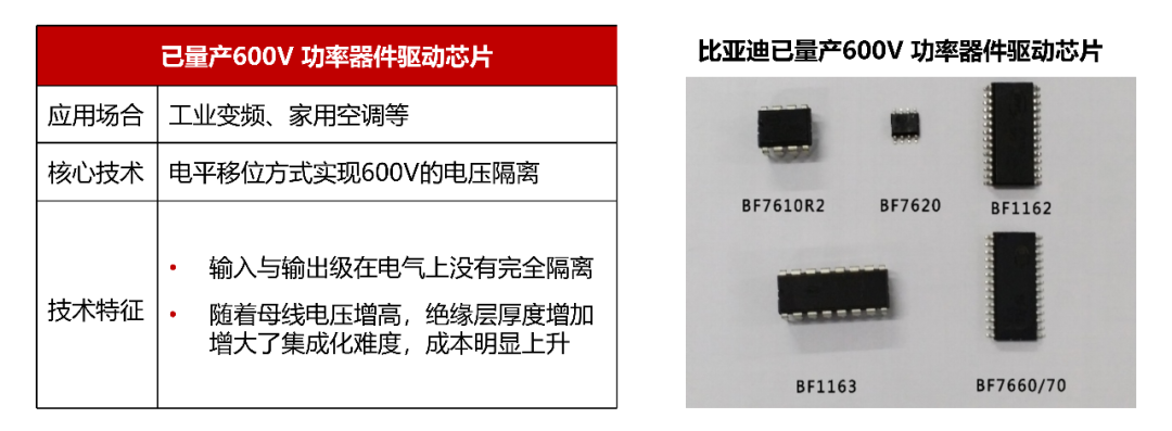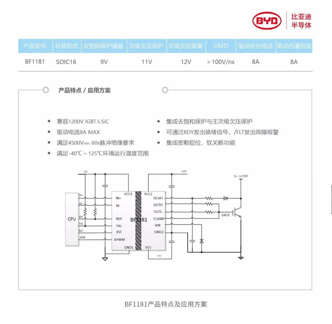 >近期,比亚迪半导体基于先前研发成果的稳固基础上,继续整合自身优势,>成功>自主研发>并>量产>1200V功率器件驱动芯片——BF1181>,今年1>2>月>实现>向各大厂商批量供货。>