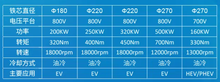 > >面向纯电动汽车、混动和插电式混合动力车,松正开发了五款800V扁线电机。功率分别为200kW、250kW、320kW、500kW和160kW,转矩从320Nm、400Nm、450Nm、700Nm到330Nm,转速则覆盖18000rpm、12000rpm和13000rpm。这些电机的冷却方式均为油冷。>