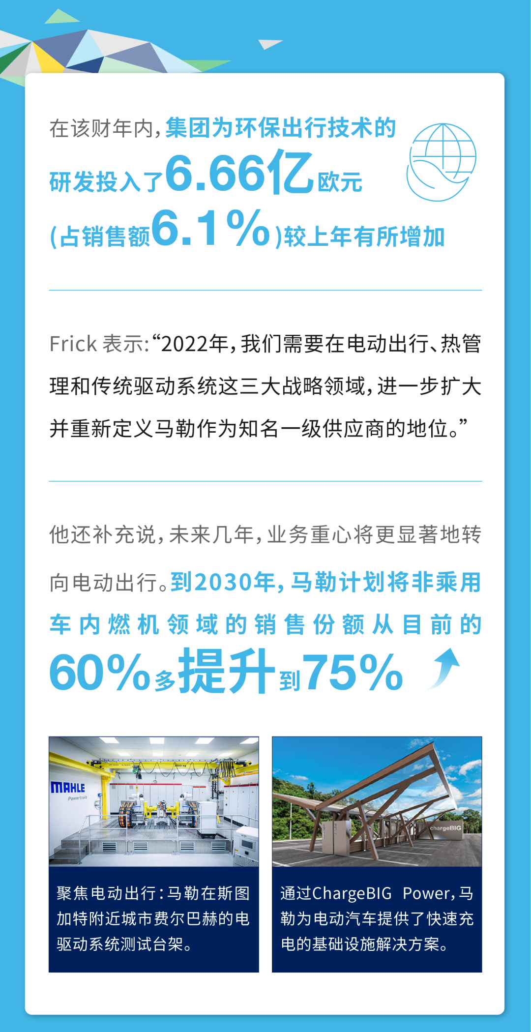 转型进入新阶段:提速增效事业部合并重组集团管理董事会成员从七人精简至四人增持马勒贝洱股份至100%作为电气化促成因素的热管理业务将得到加强CEOArndFranz:“这一切将使马勒更好地迎接未来。”监事会主席HeinzK.Junker教授:“此番重组将显著提高集团的整合度。”马勒集团的转型又将迎来新...