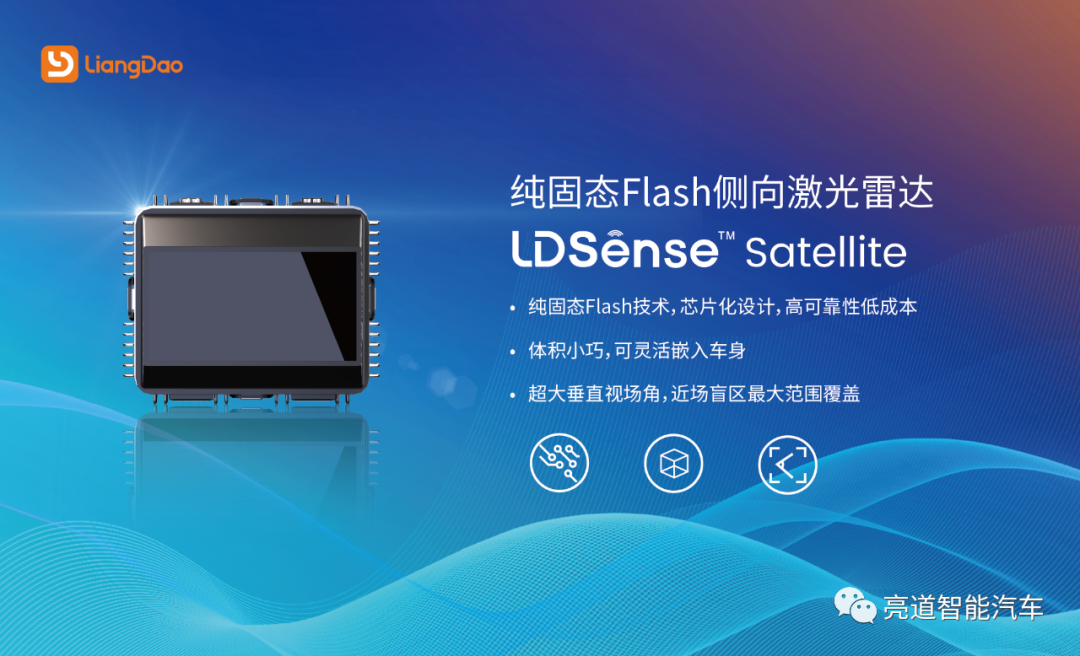 >2022年5月13日,中国北京,亮道智能正式面向中国市场客户发布> >自研纯固态Flash侧向激光雷达——LDSense Satellite。> > > > >