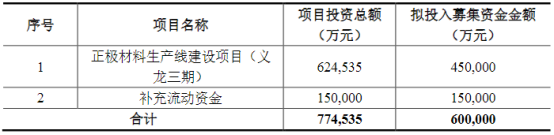 > >其中,正极材料生产线建设项目(义龙三期)的实施主体为振华新材全资子公司义龙新材,项目总投资为62.45亿元,拟使用募集资金45亿元。项目建成后,将新增年产10万吨正极材料的生产能力,主要用于生产高镍、中高镍及中镍三元正极材料,并兼容钠离子电池正极材料的生产。>