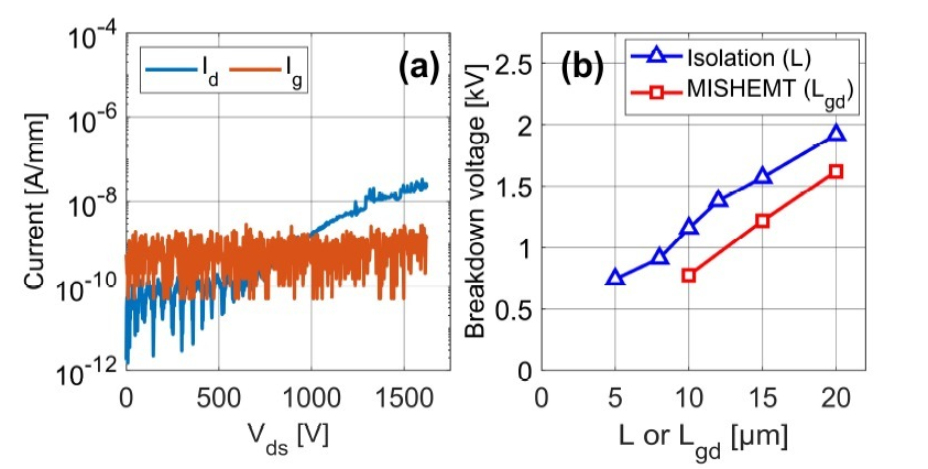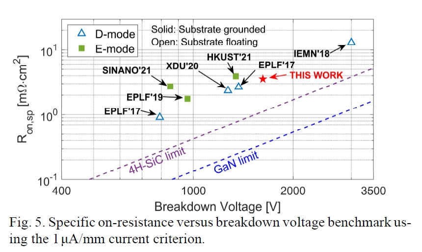 >此外,这款MIS-HEMT的特定导通电阻为3.61 mΩ*cm> >2> >,截止状态击穿电压超过1600V,垂直击穿电压> >超过3000V> >。> >