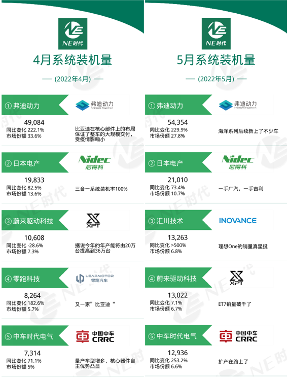 > >今年5月的新能源乘用车电驱动装机量已出炉,随着长三角地区疫情的好转,供应链企业的排名开始回到常有的状态。能扛过不可抗因素的冲击,装机量和排名都稳定发挥的企业都具有极其鲜明的特色和优势。>