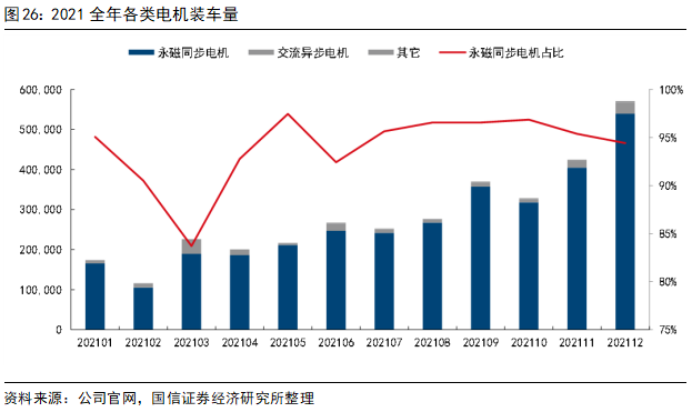 >技术路径:永磁同步电机的装车占比达94%> >