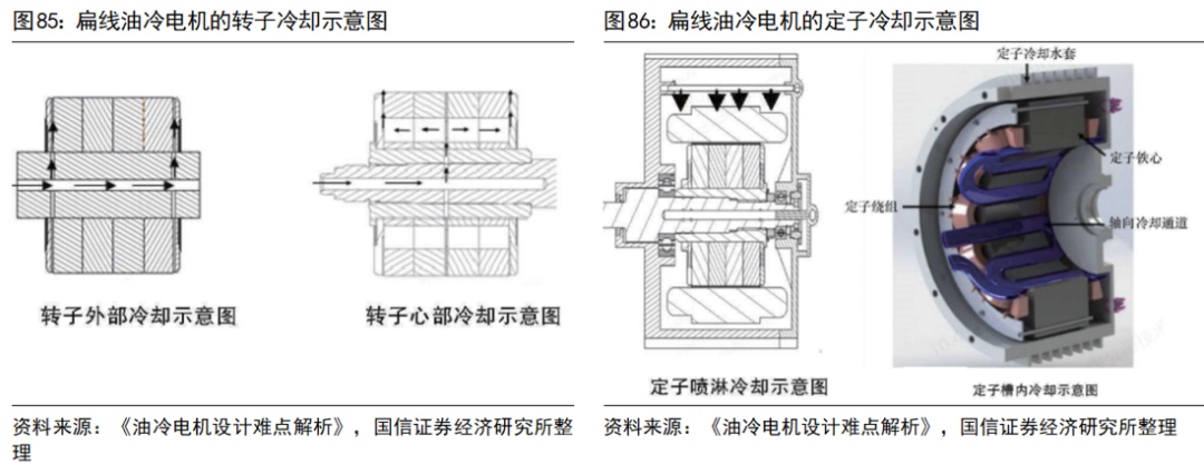 > >扁线电机拥有更高的功率密度,扁铜线之间间隙较大,冷却油易于渗透,扁线电机的发展推动了直接油冷技术的应用。同时,冷却油拥有良好的绝缘性,可作为减速器及齿轮轴承的润滑油使用,也可收集电机余热用于电池包的保温,直接油冷技术加速了整车热管理系统集成化的进程,对多合一电驱动系统总成的发展有促进作用。>