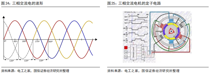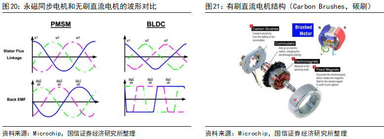 > >2)无刷直流电机:无刷直流电机的电压波形和电流波形是矩形波或梯形波,伴随着较大的转矩脉动,在汽车行驶中有明显顿挫感,对用户体验构成负面影响。交流电机的波形则通常是正弦波,转矩更加平顺,振动问题较小。>