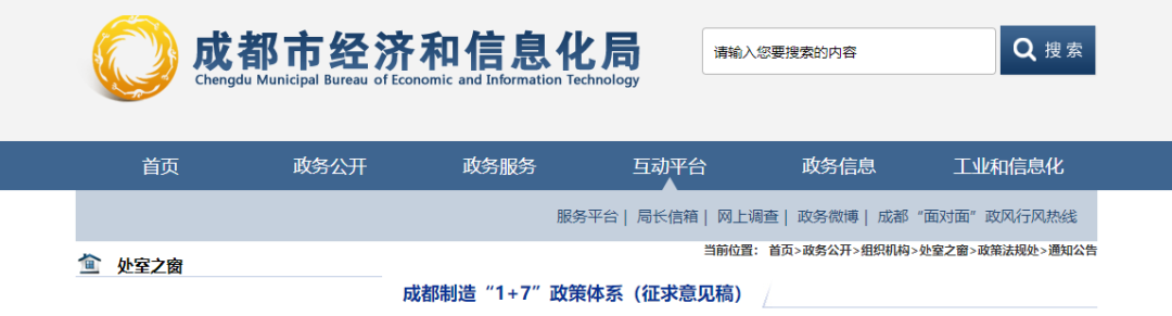 > >二、《成都制造“1+7”政策体系(征求意见稿)》>