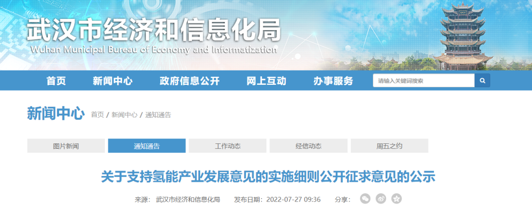 >7月27日,武汉市经信局印发了《关于支持氢能产业发展意见的实施细则(征求意见稿)》,同日,成都市经信局> >印发> >了《成都制造“1+7”政策体系(征求意见稿)》。详情如下所示:> >
