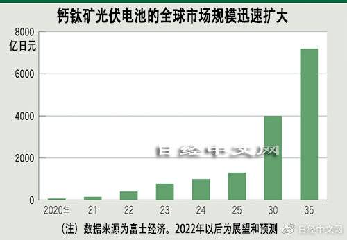 据富士经济预测,钙钛矿型光伏电池的全球市场规模到2035年将达到7200亿日元,增至2021年的约50倍。针对日本企业的前景,该公司的专家川合洋平指出“各企业能否长期维持量产和价格竞争所需的数十亿日元以上的设备投资,将成为关键”。