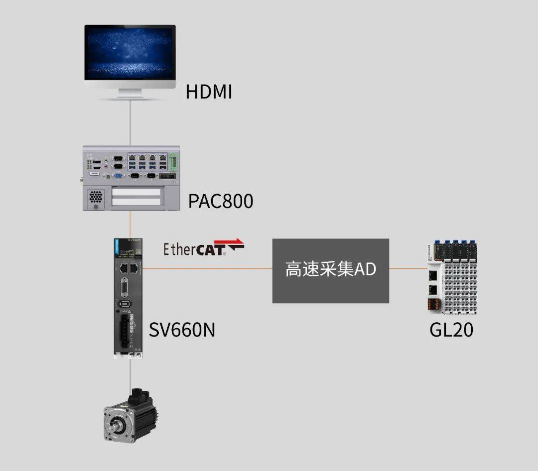 > > > >EtherCAT一网到底; 共直流母线伺服驱动器IS810N速度环带宽3kHz,电流环刷新周期625kHz,23位绝对值编码器,分辨率可达0.15角秒; GL20刀片式IO可插拔设计,接线更便捷。 >