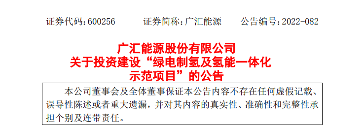 10月17日,广汇能源发布《关于投资建设“绿电制氢及氢能一体化示范项目”的公告》(以下简称“《公告》”)。 >