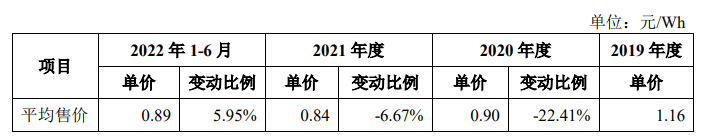 按照销售均价来看,蜂巢能源产品销售均价为1.16元/Wh、0.9元/Wh、0.84元/Wh及0.89元/Wh,呈先下降后上升趋势。该电池企业称,2020 年,在动力电池行业订单及产能规模扩大、纯电动汽车销量上升、电芯和电池包设计不断优化等因素的共同推动下,行业整体售价有所下降,售价随之进行调整;2021 年,销售产品中,电芯及模组比例进一步提升,从而导致平均售价有所下降;2022年1-6 月,随着原材料价格的上涨,适当调整了销售价格。>