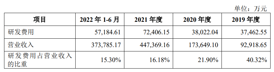 >截至报告期末,蜂巢能源共有2,360名研发与技术人员,占员工总数比例为19.58%。蜂巢能源也在持续进行高强度研发投入,研发费用分别为 3.75亿元、3.80亿元、7.24亿元及 5.72亿元,占营业收入的比重从15.30%最高至40.32%。研发费用总额呈较快的增长趋势,且高于同行业的平均水平。>