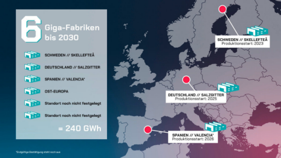 >第一家工厂位于瑞典谢莱夫特奥,将由Northvolt AB公司负责运营,大众将与其于2023年开始生产。大众于2021年8月还向其追加投资5亿欧元,并且双方成立了合资工厂,其中大众拥有该工厂五分之一的股权。 >