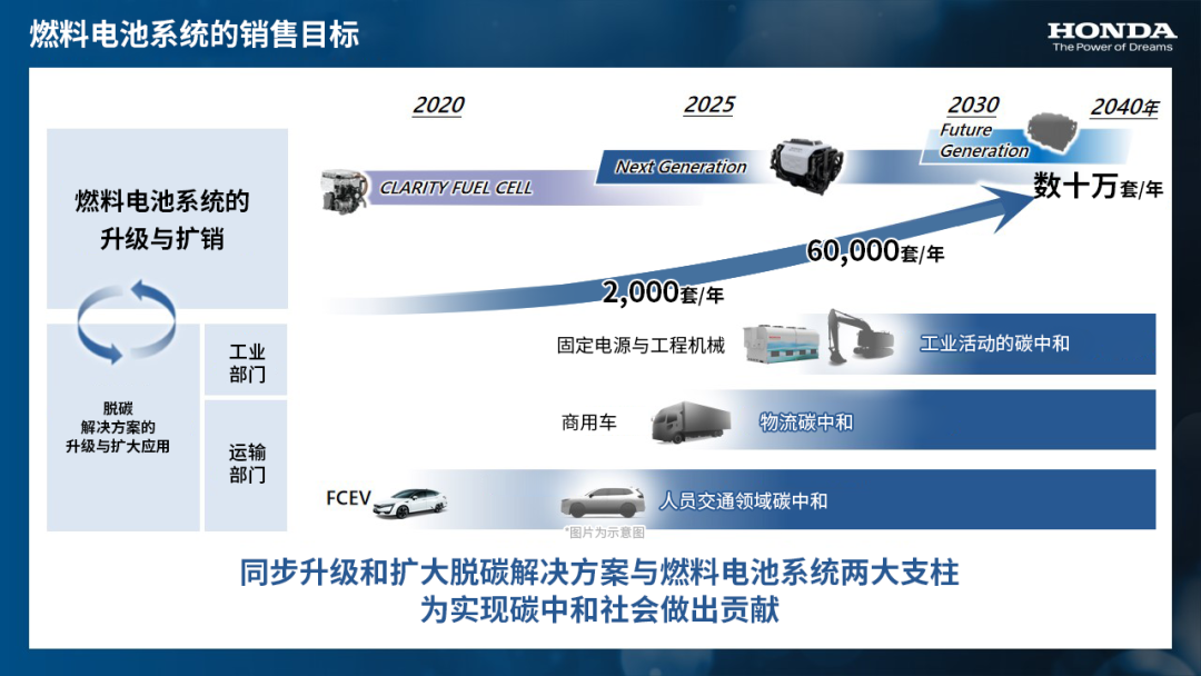 根据全球环境趋势,我们将在2020年代中期开始对外销售新一代燃料电池系统的模块,以便将作为核心技术的燃料电池技术的应用范围扩大到Honda的FCEV之外,为碳中和社会做出贡献。销售初期,计划每年销售2000套,然后逐步扩大销量,争取在2030年达到每年6万套,在2030年代后半期达到每年数十万套的销售规模。>