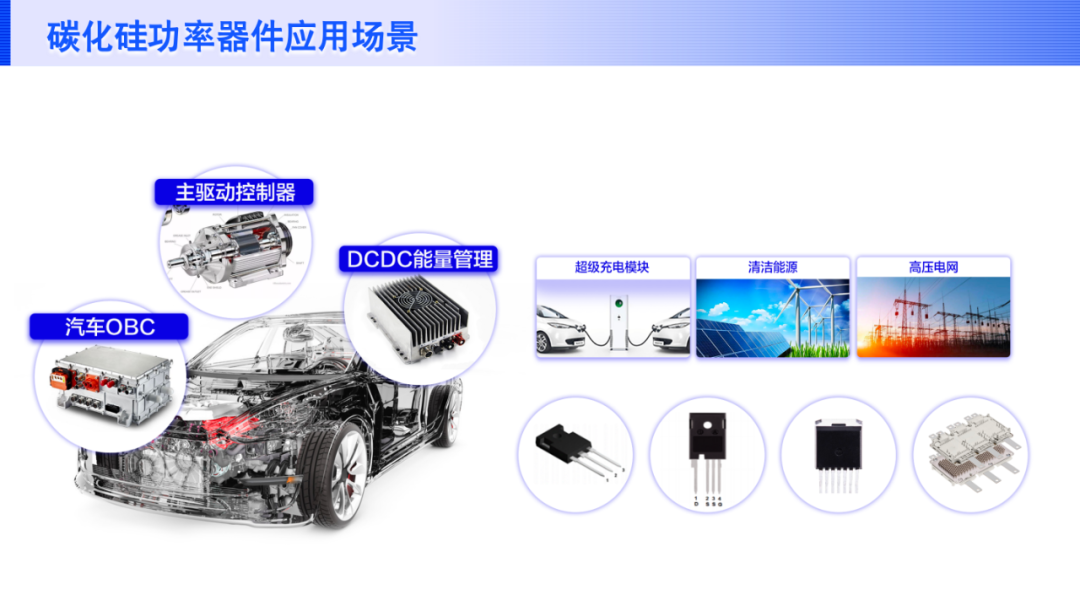>碳化硅是一种适用于大功率器件且具有广阔发展潜力的新型半导体材料。具有高热导率、高电子迁移率等优良特性。在高压大电流及高温的恶劣条件下工作。可以大大减少设备的发热量,大幅度降低电力功率变换器的体积和重量,提升整体效率。>
