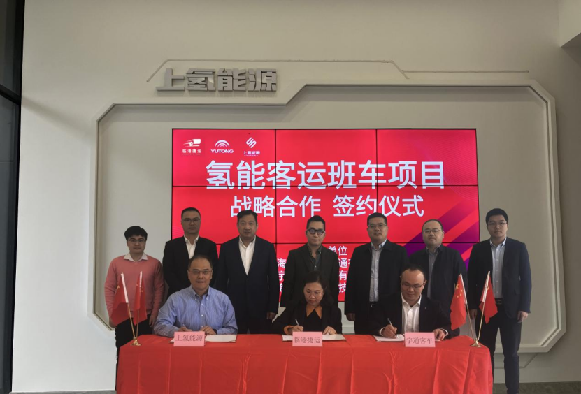 3月31日,“氢能客运班车项目战略合作签约仪式”如约在上氢能源公司顺利举行,上氢能源与临港捷运、宇通客车达成三方战略合作。>