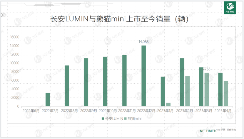 >长安LUMIN在2022年12月份单月销量接近15000辆,熊猫mini上市5个月单月最高销量将近7800辆。> >