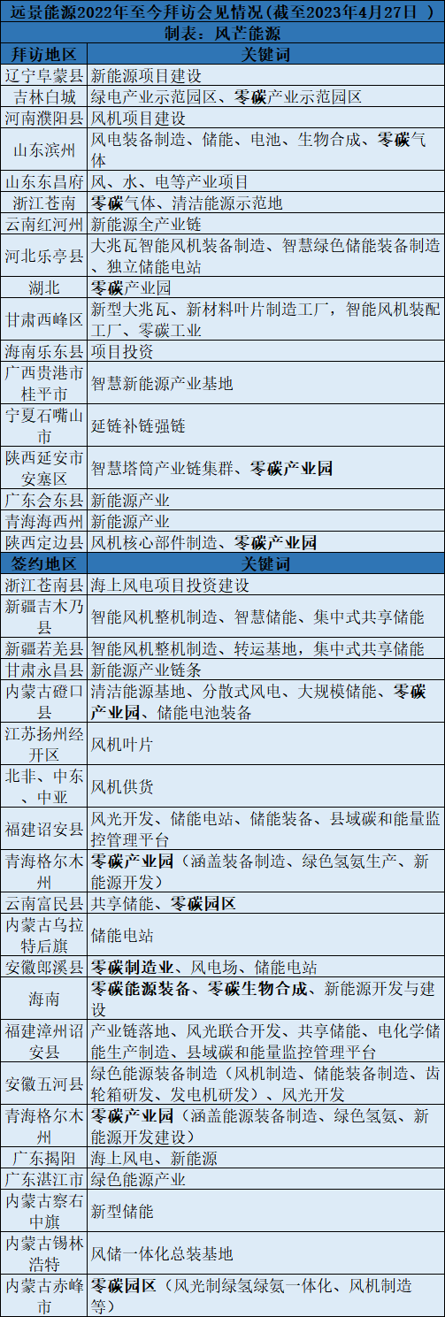 特别是地区拜访、签约中,零碳是远景能源重点阐述内容。拜访时提及区域包括但不仅限于陕西延安、定边、吉林白城、山东滨州、浙江苍南、湖北、甘肃西峰等。签约零碳区域包括但不仅限于内蒙古、云南、安徽、海南、青海等。 >