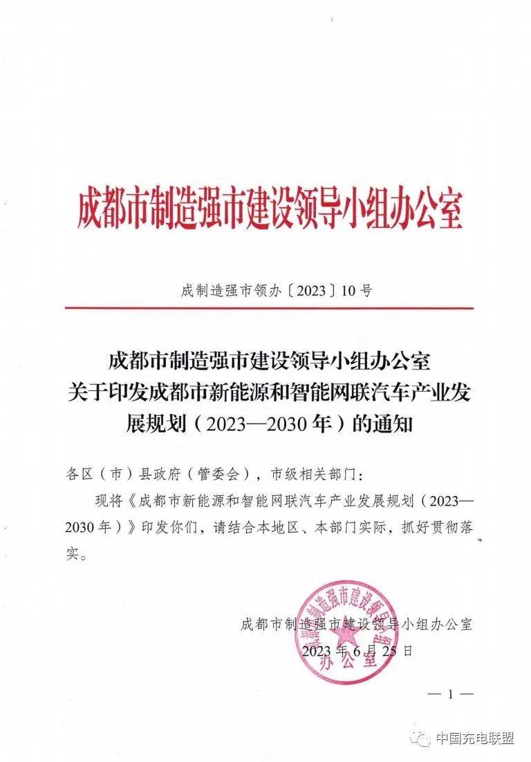 >>6月24日,成都市制造强市建设领导小组办公室印发>关于《>成都市新能源和智能网联汽车产业发展规划(2023—2030年)>》(以下简称《规划》)>的通知。> > >