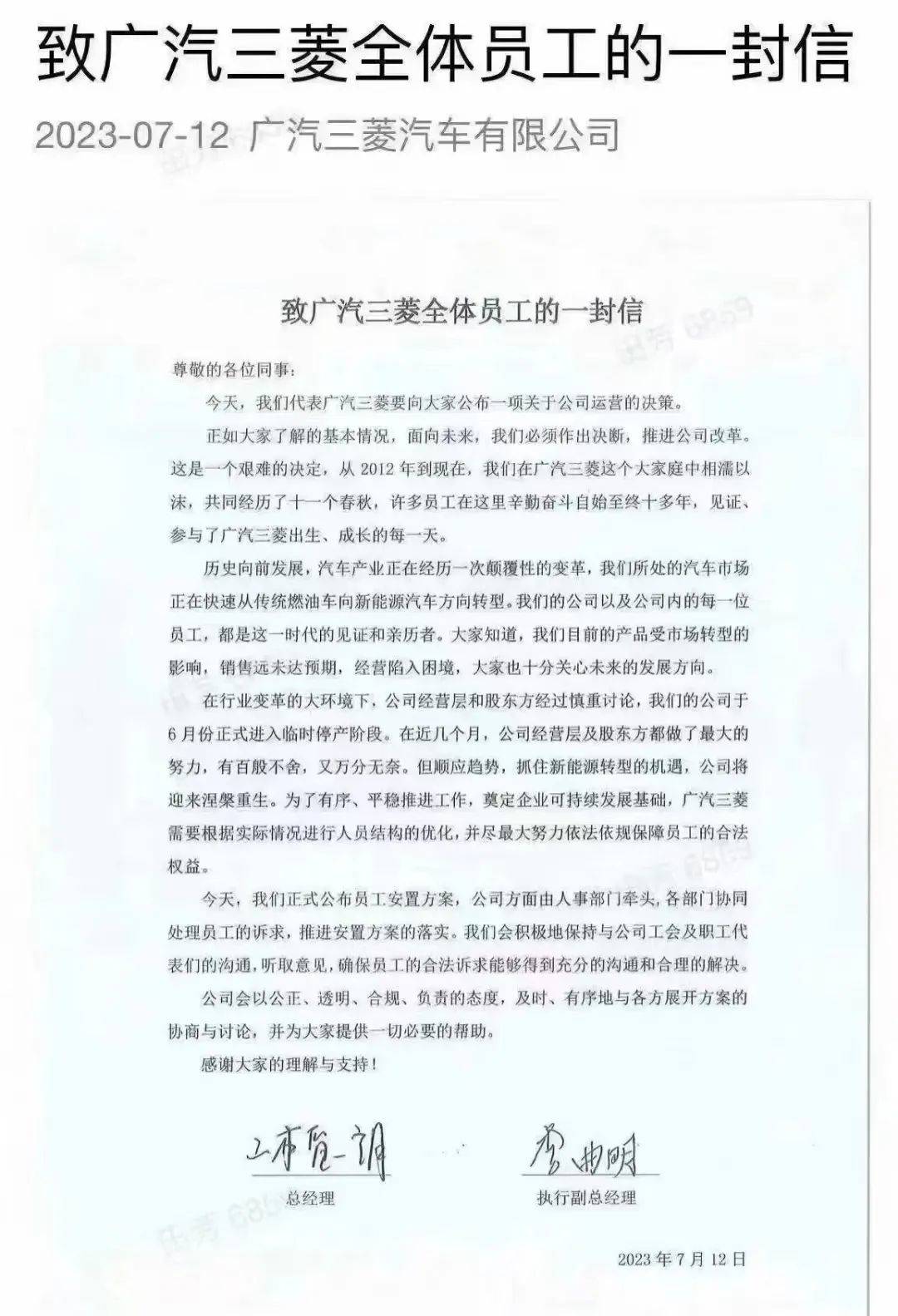 日前,一则《致广汽三菱全体员工的一封信》引发外界关注。信中称广汽三菱目前的产品受市场转型影响,销售未达预期,经营陷入困境。公司于6月份正式进入临时停产阶段。此外,广汽三菱需要根据实际情况进行人员结构的优化。天眼查显示,广汽三菱2022年的员工人数达到2698人。>