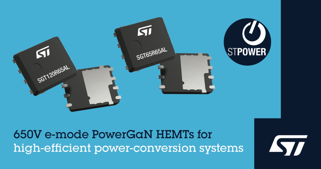 该系列先期推出的两款产品>SGT120R65AL>和>SGT65R65AL>都是工业级650V常关>G-HEMT™>晶体管,采用PowerFLAT 5x6 HV贴装封装,额定电流分别为15A和25A,在25°C时的典型导通电阻(RDS(on))分别为75mΩ和49mΩ。此外,3nC和5.4nC的总栅极电荷和低寄生电容确保晶体管具有最小的导通/关断能量损耗。开尔文源极引脚可以优化栅极驱动。除了减小电源和适配器的尺寸和重量外,两款新GaN晶体管还能实现更高的能效、更低的工作温度和更长的使用寿命。> >