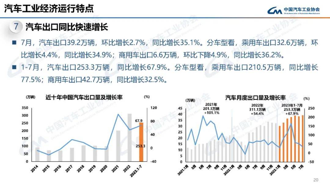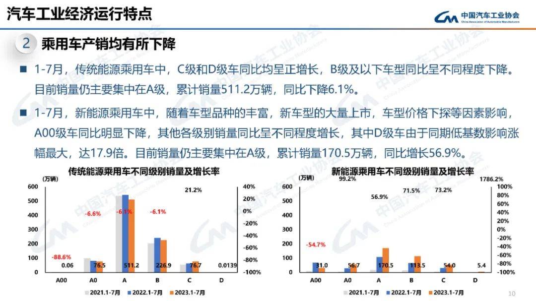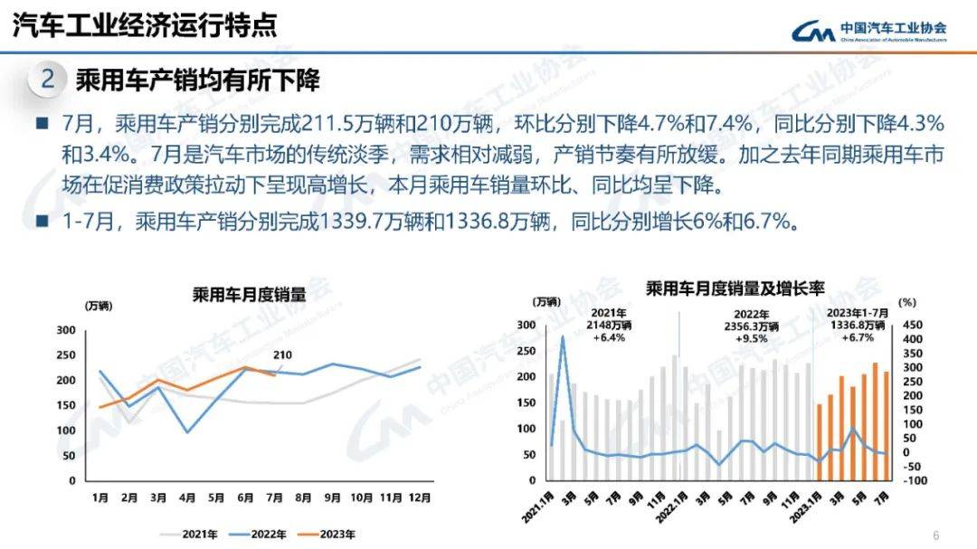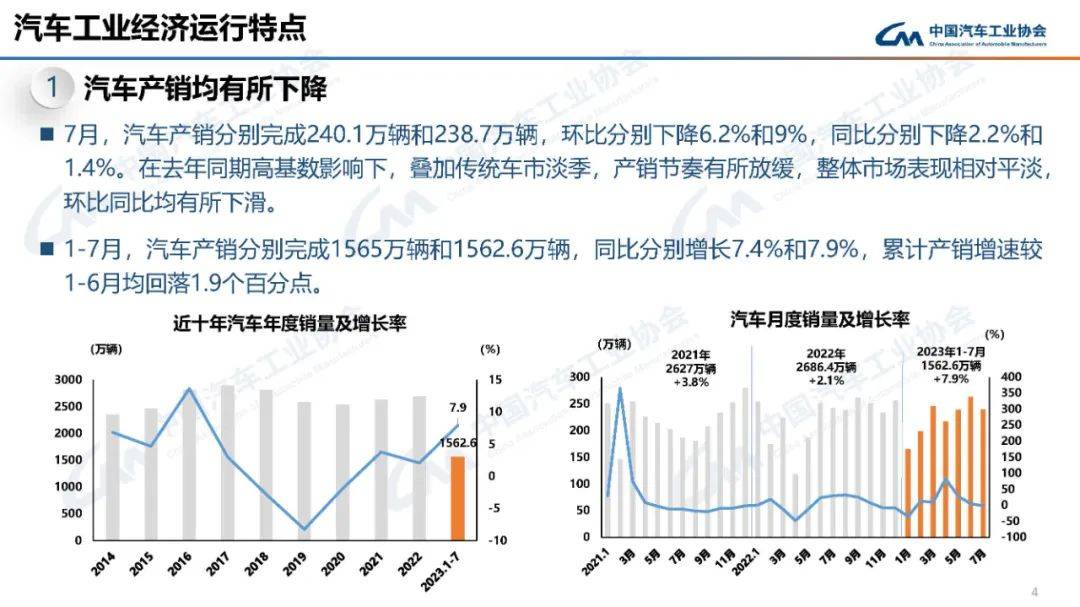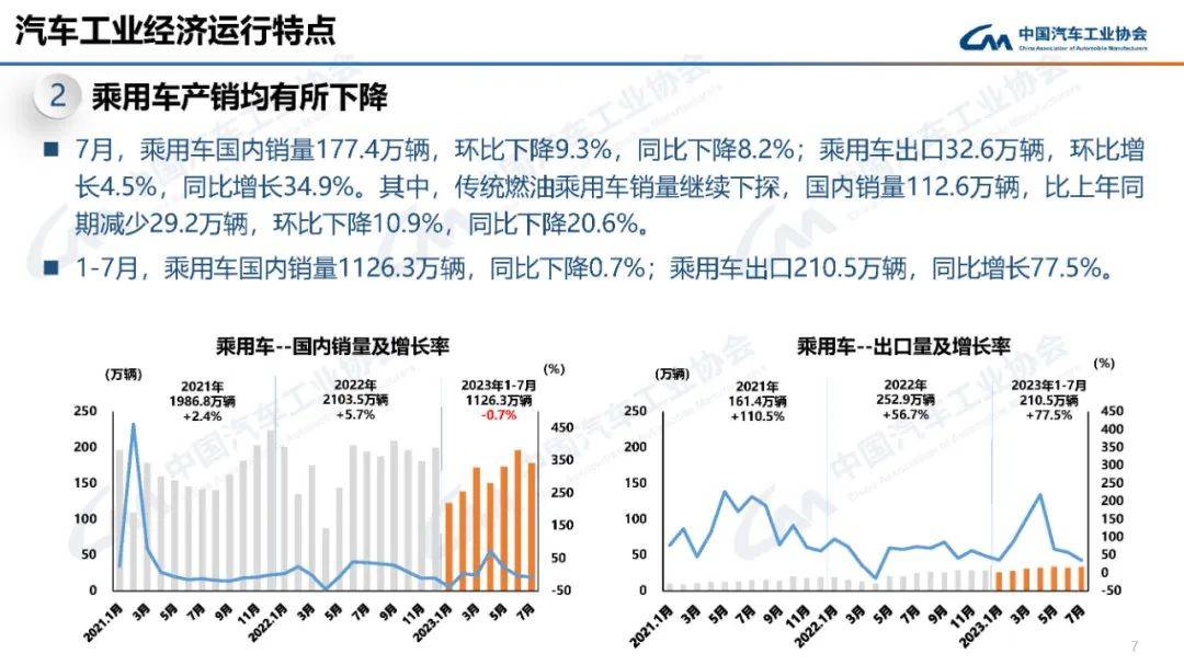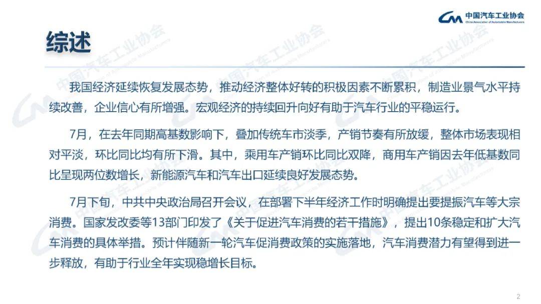 >7月,在去年同期高基数影响下,叠加传统车市淡季,产销节奏有所放缓,整体市场表现相对平淡,环比同比均有所下滑。其中,乘用车产销环比同比双降,商用车产销因去年低基数同比呈现两位数增长,新能源汽车和汽车出口延续良好发展态势。> >