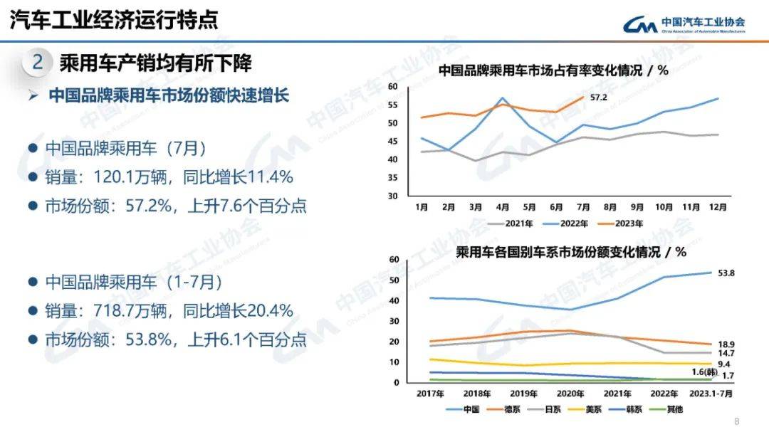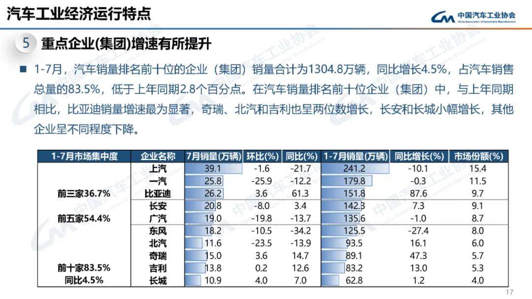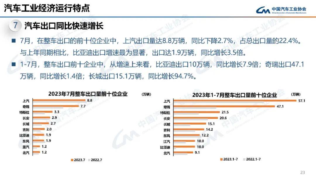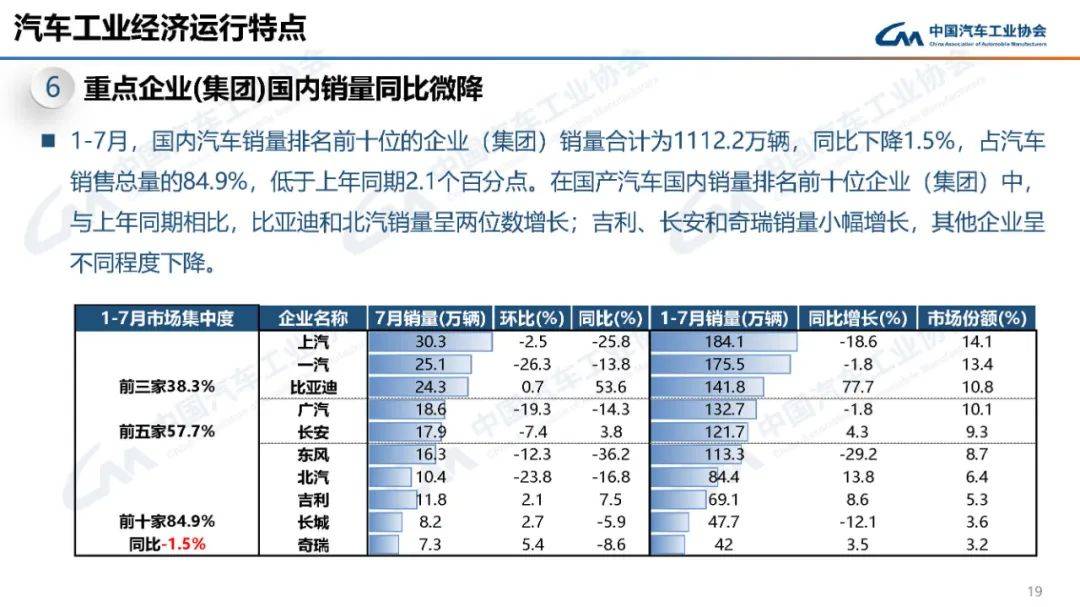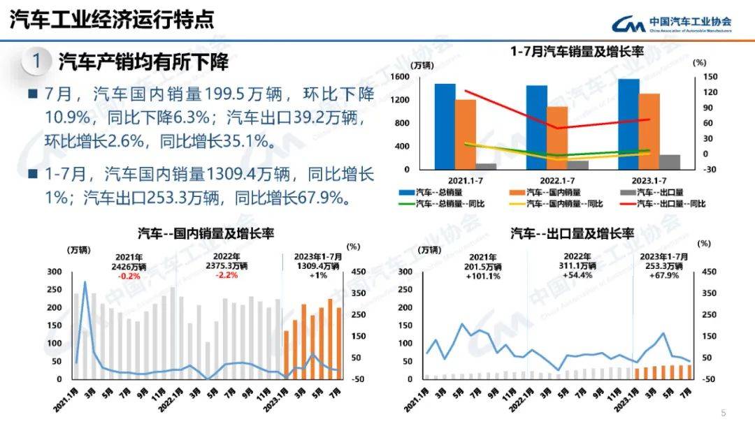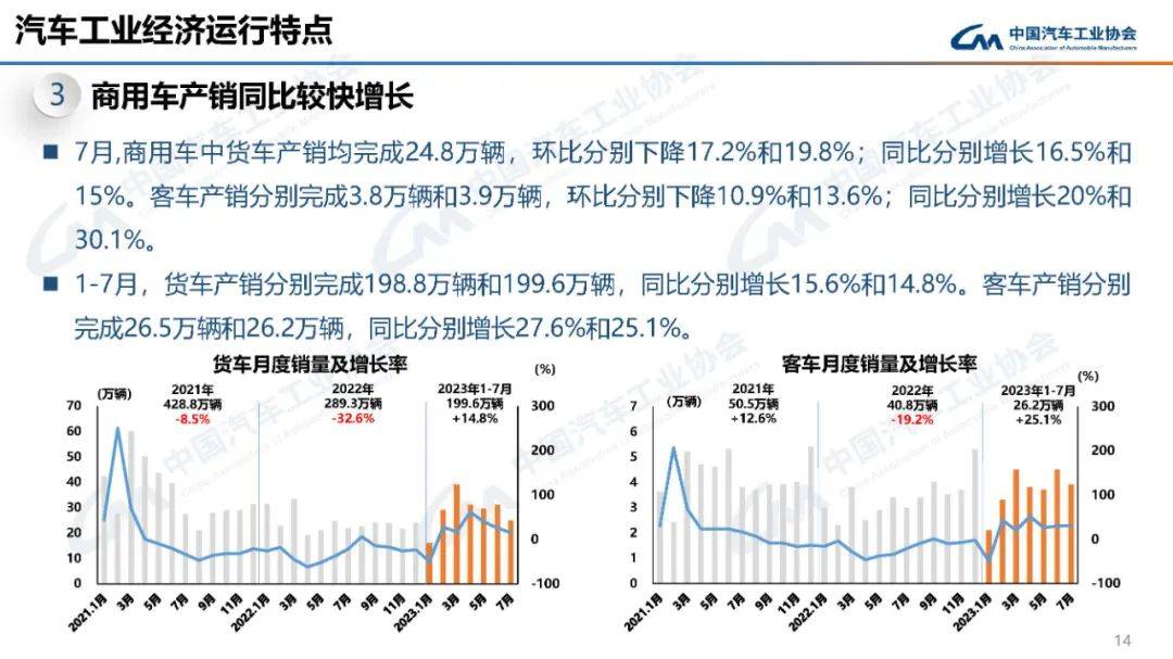 >7月,在去年同期高基数影响下,叠加传统车市淡季,产销节奏有所放缓,整体市场表现相对平淡,环比同比均有所下滑。其中,乘用车产销环比同比双降,商用车产销因去年低基数同比呈现两位数增长,新能源汽车和汽车出口延续良好发展态势。> >