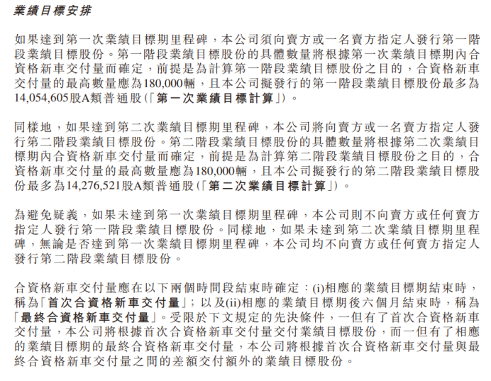 将通过发行对价股份的方式予以支付,对价股份数量最多为9113.179万股A类普通股,占扩大后股本约5%。没有达到业绩目标期里的里程碑,则小鹏汽车不向卖方发行相应的业绩目标股份。> >