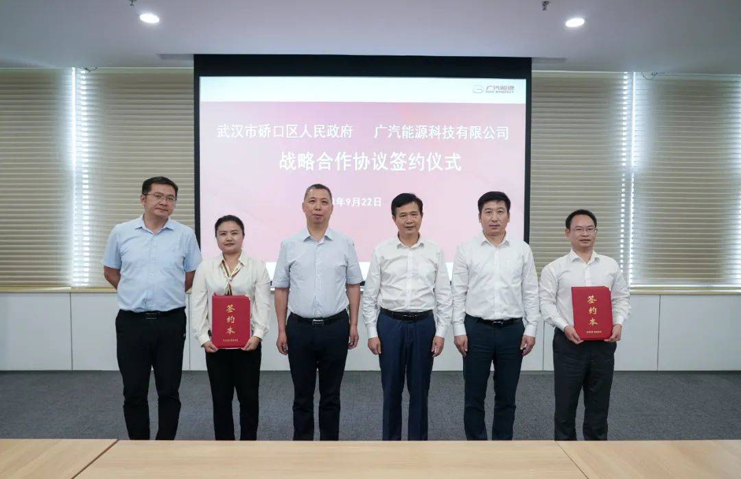 2023年9月22日,武汉市硚口区人民政府与广汽能源科技有限公司(以下简称“广汽能源”)战略合作协议签约仪式在广汽埃安总部举行。武汉市硚口区人民政府区长苏海峰、武汉市硚口区发改局局长操俊峰,广汽埃安总经理古惠南、广汽能源总经理刘志辉见证签约,武汉市硚口区商务局局长汪钰、广汽能源综合管理部负责人陈立勋分别代表双方在战略合作协议上签字。 >