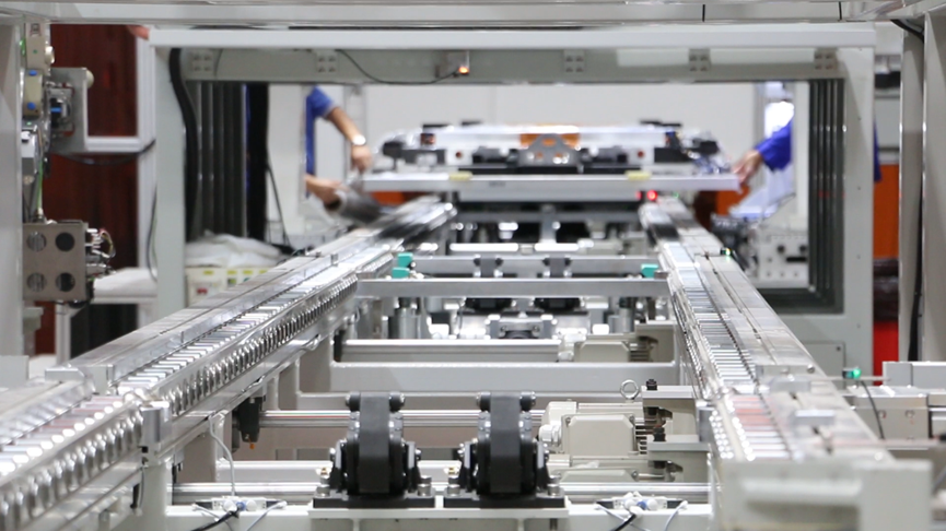 盐城弗迪电池有限公司副总经理助理陈茂龙介绍,“车间目前设置两条生产线,采用模块化生产方式,将复杂的生产流程分解为多个模块,由各个小组完成不同模块。”和传统流水线生产相比,这样的生产方式既能方便单个模块功能调试升级,又能使多人协作互不干扰,大大提高了生产效率。> >
