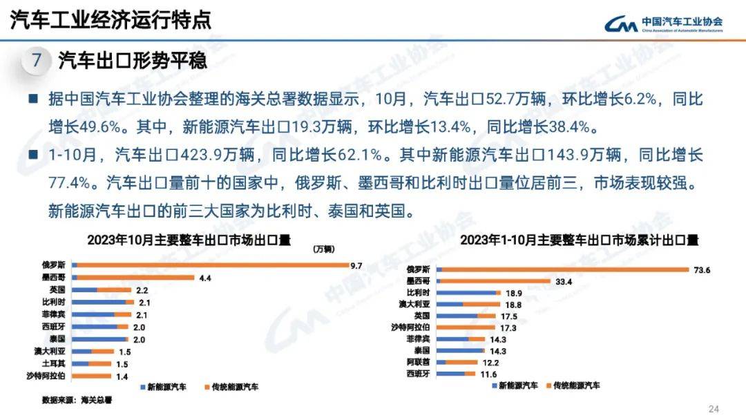 据中国汽车工业协会分析,今年以来,国家实施更加积极有为的宏观政策,加快落实稳就业稳经济推动高质量发展若干举措,经济运行总体平稳。上半年,汽车市场延续良好态势,多项经济指标同比均实现两位数增长。具体来看,在以旧换新政策持续显效带动下,内需市场明显改善,对汽车整体增长起到重要支撑作用;新能源汽车延续快速...