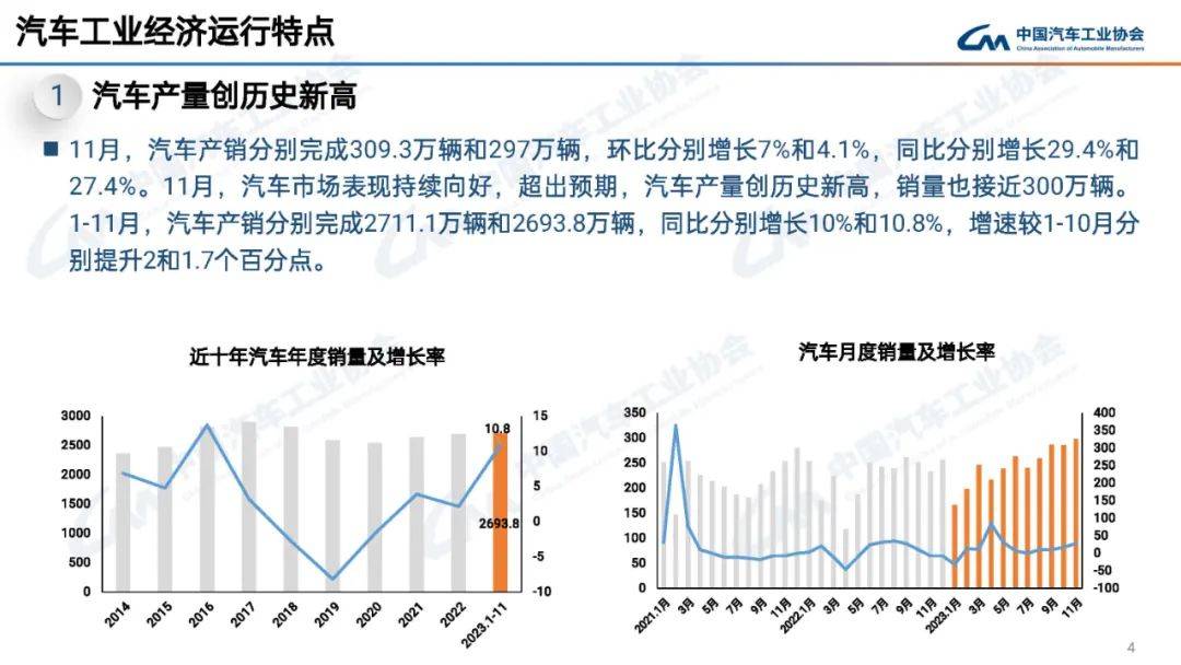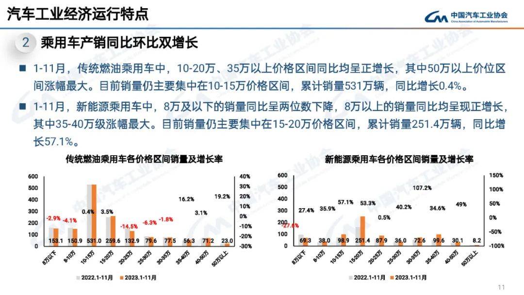 >据> >中国汽车工业协会统计分析,> >2023年11月,汽车市场热度延续,借助“双11”大促等消费浪潮,购车需求进一步释放,市场表现持续向好、超出预期。> >