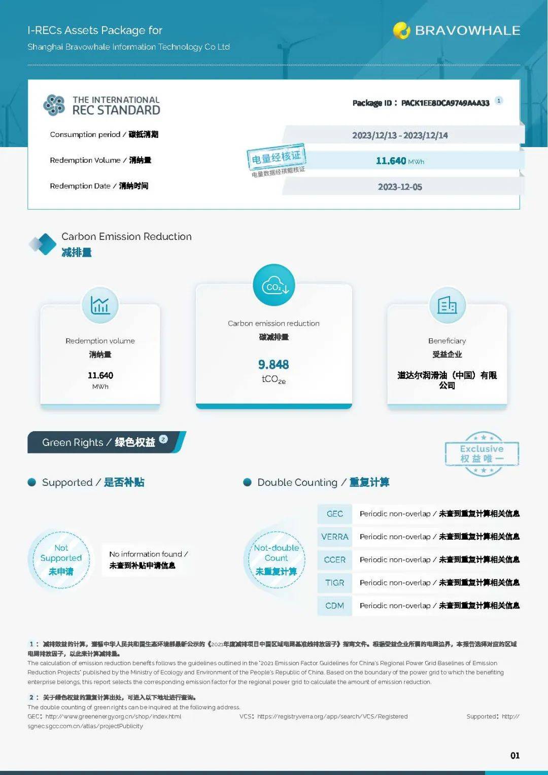 >为充分契合此次技术节>的主题,道达尔能源通过购买I-REC国际绿证证书并注销的形式抵消“2023长城汽车>&>道达尔能源技术节”碳足迹,实现“碳中和”。经核实,此次技术节活动共产生碳排放9.848t CO2e,消纳电量11.640MkWh,碳减排量为9.848t CO2e,消纳时间为2023/12/05,碳抵消期为2023/12/13-2023/12/14。>