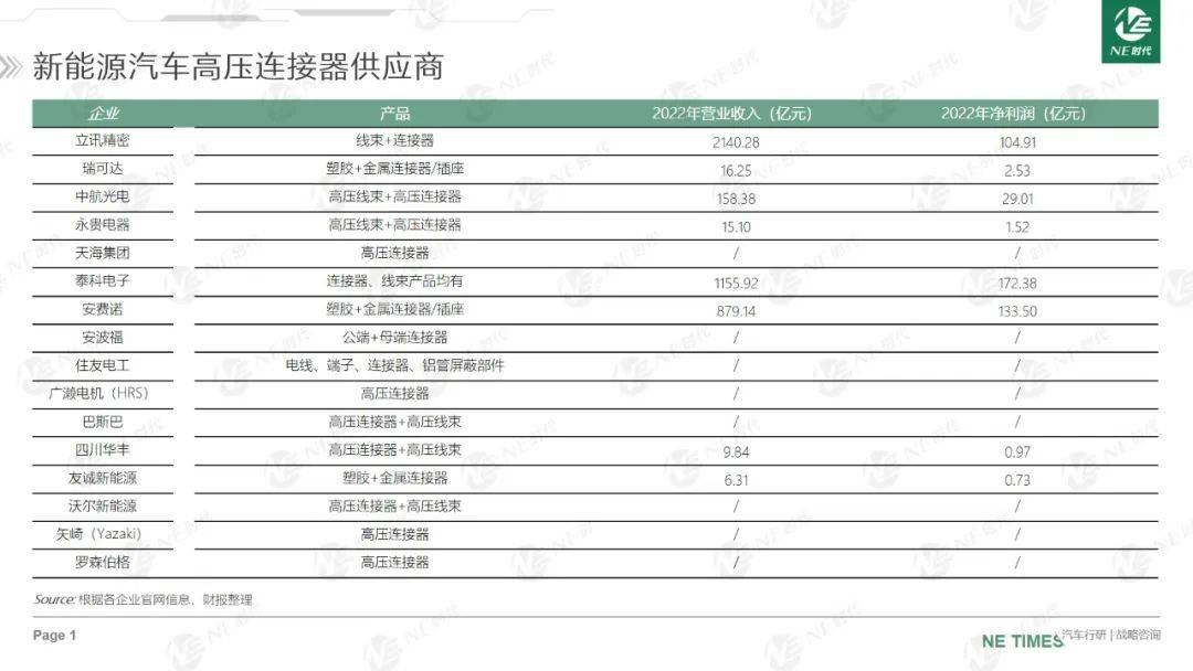 >>高压连接器供应商:>营收体量小 但净利润率较高> >