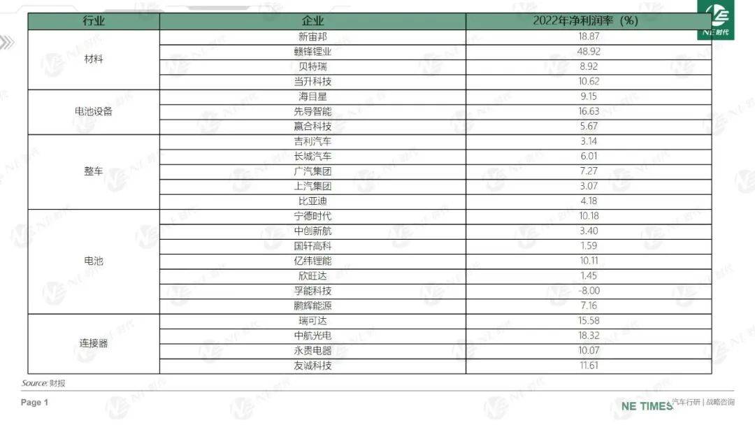 >对比整车、电池企业、设备,甚至部分材料企业,利润水平比较突出。> > >
